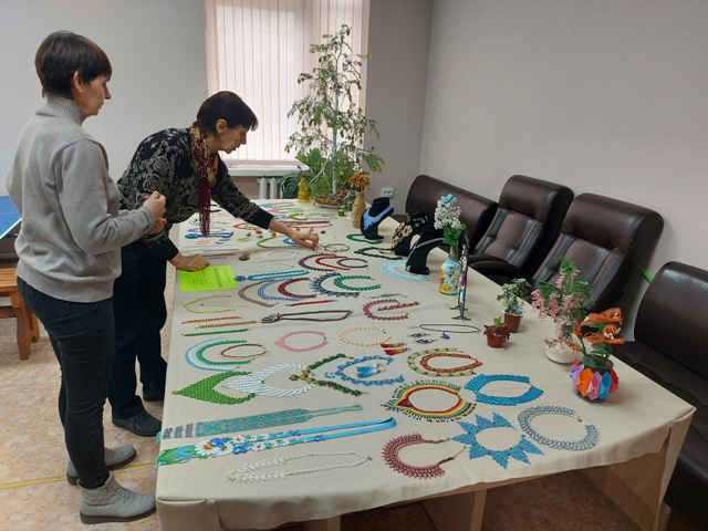 В начале мероприятия всех пригласили на выставку изделий из бисера. На ней были представлены работы, созданные получателями социальных услуг. Экспозиция поражала разнообразием тем и цветовых гамм: нежные цветы, словно вырванные из весеннего сада, изящные колье, сверкающие как далёкие звёзды; вышивки, в которых будто ожили самые изысканные узоры.
