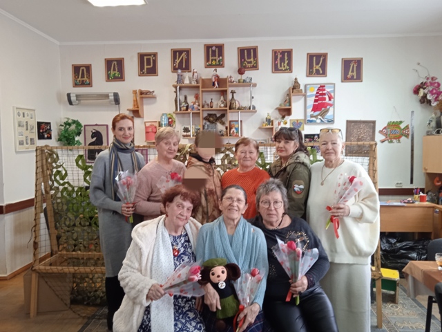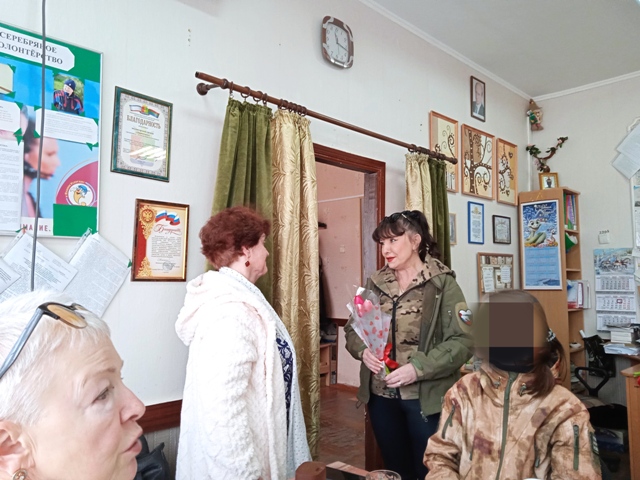 А в отделении дневного пребывания «Даринушка» села Фрунзе состоялась трогательная встреча поколений. Женщины, которые сегодня стоят на страже интересов Родины в зоне специальной военной операции, пришли с поздравлениями к тем, кто помогает своим трудом в тылу.